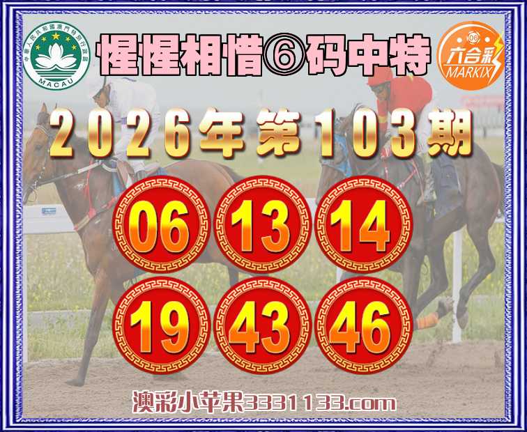103期: 『惺惺相惜』 ⑥码中特06.13.14.19.43.46】开:06