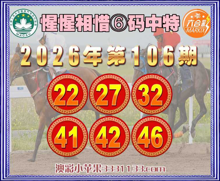 106期: 『惺惺相惜』 ⑥码中特22.27.32.41.42.46】开:22